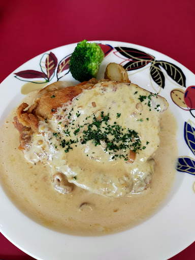 さて、それよりお食事です。 時間的にもお腹が空いてたまりません。メニューを見てどれにしようか、あれもいいし、こっちも美味しそうだし… ムスコは煮込みハンバーグランチ、下の子はお子様ランチ。 私と妻はチキンを選び、それぞれ違う味付けのランチを。 私はハニーマスタードソースを選択。