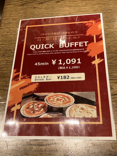 Read moreI went there with friends for lunch buffet. During covid-19 break out period, the restaurant was quite well prepared and established. They requested you to wear a mask and a pair of plastic gloves while you go hunting your food at the service counter. Quite impressive. Food vise, they provided drink bar (with additional cost) salad bar, 3 kinds of pasta and 4 kinds of pizza (already cooked, not made by order). Based on ¥1200 pricing, it's quite worth to...