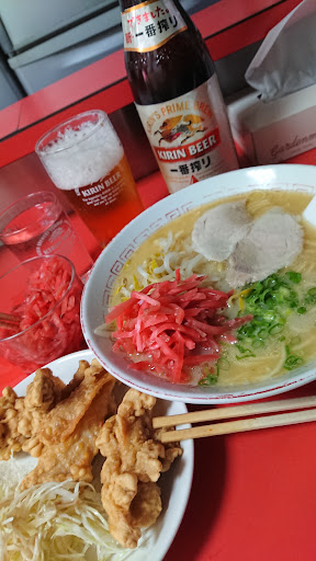 隣接する[アーケード街]が無くなる?という事で、慌てて訪店。(いったい何年振りだろうか!?)。着席し「ビール」「餃子」と『オムライス』を注文。他に4・5人居たので時間がかかる感じ。大将の娘さん!?が『一番搾り』と「辛子高菜」を持ってきてくれた。ラーメン用っぽいが、許可をもらい餃子が来るまで高菜をツマミに。うん、旨い。辛味も程よく、ラーメンに入れるとまたいい感じだろう。この夏場にキチンと冷蔵庫管理されている。んで、餃子到着。フライパン焼きだがパリパリとモチモチの[焼き]の皮と、玉葱ニンニク中心の[餡]もまた麦酒に良く合う。餡に青味(緑色野菜)が欲しい感じだが[タレ皿]の中にネギがたっぷり入ってる。『オムライス』は、チキンライスをまず作って(そういやぁ、メニューに[チキンライス]もあったな)、フライパンで「薄焼き玉子」を作って上に被せ、布巾で手で形を整えるタイプ。上にかかってるのも普通のケチャップ。うん、これこれ。懐かし旨い。シンプルなオムライスはまたいい感じのツマミになる。次にいつ来れるか分からないのと、腹にまだまだ余裕があったので、『ラーメン』と『唐揚げ3個』&麦酒を追加(笑)。ラーメンにはさっきの「高菜」とテーブルにある「紅生姜」を投入。ニンニクや胡椒や胡麻等は見つからなかった(悲)。しかしここは「ラーメン屋」ではない、我慢我慢。スープはあっさり?系でチャーシューも優しい味付け。旨い。そして「唐揚げ」である。実に懐かしい。アラフィフの方に分かりやすくいうと、昔小倉にあった『八仙閣』の味。衣自体は柔らかくモッチリ、味は薄めで、盛り付けの皿に添えてある「塩」をお好みで付ける。懐かし旨い。とーたる、大満足である。アラフィフの皆様に『是非!』中華料理店なので色々有りますよ。...