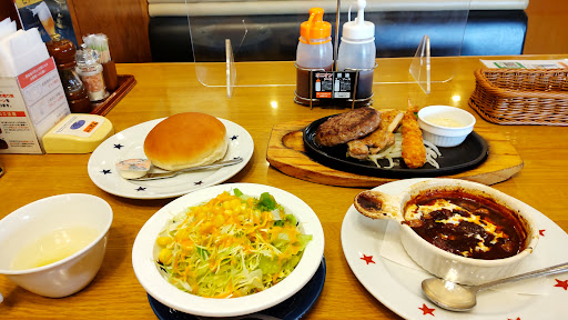 E: Satisfied points. â Inexpensive. You can eat both sufficient amount of steak or hamburger from Â¥1,000. In addition, you can order rice, bread and soup as much as you want. Perfect !