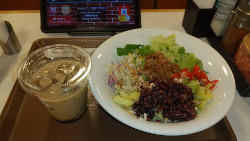 Read moreすき家は定期的に行きますよ。安定したお味で安く気軽に一人で入れるし、新作メニューがいつも美味しそう、ということで、野菜好きなわたしは、お食事サラダを注文しましたよ。牛とチキンがあり、やはりすき家だから牛でしょ。牛丼の牛の味の肉(笑)がサラダにどうも!って感じで乗ってて、生野菜メインですが、雑穀米ぽいのやナッツなどもあり、野菜食べた感はありますね。欲をいえば、ゆで野菜、芋や人参などの繊維質の野菜がもう少しでも入っていれば。。お皿がちゃんぽんの皿くらい大きいのですが、生野菜が多いので満腹にはなりません、そのことを予想して、また何となく、こんなんも良いかなと、黒糖ゼリー入ほうじ茶ラテなんぞも一緒に頂きました。普...