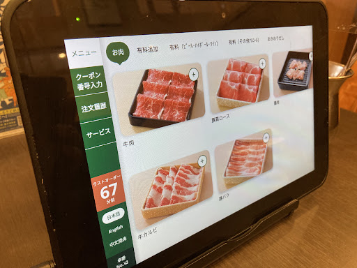 土日は100円高くて尚且つ夜はお寿司が必然的についてきました。お寿司は本当にペラペラのすかすかの代物で50円位の価値かと。お野菜は豊富で取り放題。ソフトクリームと白玉とぜんざいとフルーツポンチとワッフルも食べ放題でした。ソフトクリームはそんなに美味しくはなかったです。それとワッフルは生地から各自焼くのですが焼きたてなのに!なんと!全然美味しくなかったのにはびっくりしました。どういう生地???肉だけは毎回ボタンを押してスタッフに注文するのですが毎回スタッフさんが端末に入力しているのに毎度10分以上経っても運ばれてこず。催促したらすぐくる。の繰り返しでした。肉を持ってくるのがスタッフの主な仕事でしょうに。その主な仕事がまるで機能していないって一体?と思いました。あまりに毎回注文した肉がこないのでいらっとしてスタッフの中では一番年上かなと思われる人に注意したところ謝る訳でもなくそそくさと肉だけ持ってきて黙って逃げ帰るみたいな最低最悪な対応をされたのであ~ここは全員アルバイトだけなんだなと思いました。 ついでに時間制限100分があったのですがピークを過ぎた閉店前1時間前で席がらがらなのにも関わらずお時間なので席を出て行って下さい!とまだ食事中なのにも関わらず!席を追い出されたのには心底びっくりしました。普通食事を追加で取りに行くのが時間制限であって食べてる時間って普通別じゃないですか???しかも沢山人が行列をなして待ってる訳でもなく閉店前でがらがらなのに追い出すとかどうかしてませんか?そもそも肉が来るのを待つだけで軽く20分は待たされてるのにそれに関してはノーカウントで。閉店間際で周りがらがらでまだ食事中なのに追い出されるとかまともじゃないですね!こんな最低な飲食店は初めてです。とにかくスタッフ教育をまずやり直すべきでしょうね!!!昼のランチならお値段お得だと思いますが夜ならお得ではないと思いました。とにかくこちらの店舗にはもう...
