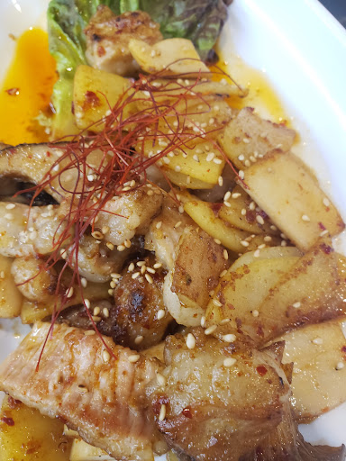 They don't have menus, they'll print a QR code for you to scan so you can order from your own smartphone. Most items don't have photos of what you're ordering, so if you don't know much about Korean food, this may not be a good place for beginners. Ours was a party of five, but they delivered two items to our table and didn't notice we only had chopsticks for four. I had to ask for one more set. My salad had a rock in it or something. I nearly broke a tooth on it, spit it onto my dish to see what it was, but it bounced off the dish and onto the floor. I believe I found the offending piece of rock. The volume of the music videos was borderline too loud, making conversation a little bit of a challenge. The takeout boxes are extremely expensive for what they provide you, so make sure you don't order too much. I have to say I wasn't terribly impressed with this restaurant, and probably won't bother...