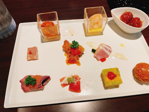 Read moreいきなり八幡東区最高峰に躍り出たイタリアンレストランで、コロナ渦中でなければ、常時満員でもおかしくない素晴らしいスポットです。バーカウンターや、団体室もあります。おしゃれなインテリアや関節照明などの雰囲気、車からのアクセスと駐車スペース、プレゼンテーション、料理の味と盛り付け、価格感、どれも抜群です。オススメは夜。隣のテーブルと十分な距離を保って座れる、心地良いブース席が豊富なため、家族での記念日ディナーや大事なデートなど、あらゆる場面に利用可能です。閑静な住宅街の端に位置するせいもあってか、昼は圧倒的に女性客が多いです。 ビュッフェには、野菜やデザートのみならず、様々な肉料理も用意されているため、コースのメインに生パスタを頼んだって満腹になります。ビュッフェ各品は蓋つきのグラス製の器に入っているため、感染症の心配もせずに楽しめます。窯焼きピザ、デザート、そして最後のコーヒーや紅茶に到るまで、徹底的に美味しかったです。それらを全て何回でも行ける価格設計に落とし込んだのは、見事としか言いようがありません。 一点ケチをつけるなら、団体室の壁に飾られている絵画が『最後の晩餐』ですので、文字通り二度と同じ人々と会食しないような暗示があり、レストランという場にふさわしくないように思います。そういった縁起の悪さを感じさせないイタリアルネサンス絵画など、いくらでもあると思うので、余裕のある時...