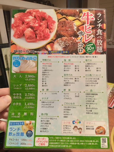 Read more《更新!》 「黒毛和牛ロース・焼きガキフェア」に訪店。焼きガキは見ため2種類の牡蠣。軽く蒸してからの提供。しかし処理の仕方が宜しくないのか、牡蠣「殻」の粉が牡蠣身の上に降りかかってしまっていて、食べる時にジャリジャリ・・。いつもは沢山食べるのだが今回は早々に「黒毛和牛ロース」の方に舵をきった。写真よりも遥かに小さい肉片が登場するも味は悪くない。単品やったら怒るけど食べ放題だから・・。時間帯なのか曜日なのか初めて見る店員さんばかりだったが対応は悪くなかった。サイドメニューの「手羽先唐揚げ」が意外に好きな私。「揚げトウモロコシ」なんてのもある。高い飲み放題にしか「焼きガキ」は付かないが年に一回ならいいかな。でもサラダバー「付き」と「無し」が選べなくなったのは少し悲しい・・選択肢はあった方がいいと思う。また、カード会員の割引券が少し額面下がったのは、競合が沢山出てきたからなんだろうなぁ(悲)。歳取ってあんまり食べれなくなったから、食べ放題やめてランチだけにしようかな。サラダバーも割と種類ある方だし、店の雰囲気は悪くないので私は好きな店です。 《前回》 改装してから雰囲気が良くなったと思う。 従業員さんの対応も良い。注文機械(オーダーターミナル!?)でラストオーダーの時間が来ても、その後わざわざ店員さんが「ラストオーダーは大丈夫ですか!?」と確認しに来てくれる。マニュアルなんかもしれないが、悪い気はしない。肉は勿論、意外にサイドメニューもgood!。家...