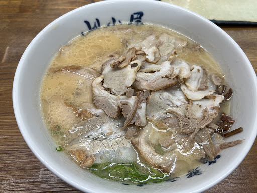 開店オープン当時、以来の訪店。HPで営業時間確認して行ったのだが何故か一時閉店中・・。仕方なく近隣をブラブラして夕方開店と同時に入店。何か嫌〰️な予感が。入店と同時「シーン」と静寂。「いらっしやいませ」「こちらのお席どうぞ」も何もない・・。嫌な予感が当たったか。まあ、いい。カウンターに着席。無愛想な店主と無口な店員。最後に山小屋(別店)に行ってた時に新発売された「昭和ラーメン」をチョイス。麦酒(Sドライ)飲むのでチャーシューを追加。んで、餃子と焼きめし。しばらくして女性従業員が来たが、いきなりヒタスラ洗い物を始める。何故?。客は私一人。餃子か焼きめしすればいいのに。まあいいか。最初に「餃子」と「麦酒」到着。「高菜」も容器ごと持って来てくれたが、量がミニトングで「2つかみ」程しか入ってない。ただで沢山食べられちゃかなわん!って事か。これなら最初から皿に入れて持ってくればいいのに・・。また麦酒ぬるい。餃子は、うーん 何か油のヒネタ臭いが。すると奥から何やら「ごぉーんごぉーん」という音が!しまった!忘れてた!!山小屋(フランチャイズが多い)は『自動焼きめしマシーン』だった!!具材が投入された以上、取消が効くはずもなく、数分後に出来上がりを食して更にガッカリ。コレ確か約20年前の発明品(機械)だぜ。まだ使ってんの!?太鼓の達人のごとき「斜めドラム」の回転釜。最大の欠点は大きくて洗うのがとっても大変な事。内側に米をほぐす為の「羽根」が付いてる事で更に洗いにくい。食した時の変な油の臭いからして昼ラッシュ後に「釜」を洗っていないようだ。(油は一旦加熱して使用した後、冷えると臭いが出る)。という事は、餃子マシーンも清掃してないかも。何の為にこの店独自で「昼休み」を設けているのだろう!?。その間にやっといたらいいやん!て思う。(餃子も焼きめしも食べるのに根性がいった)。...