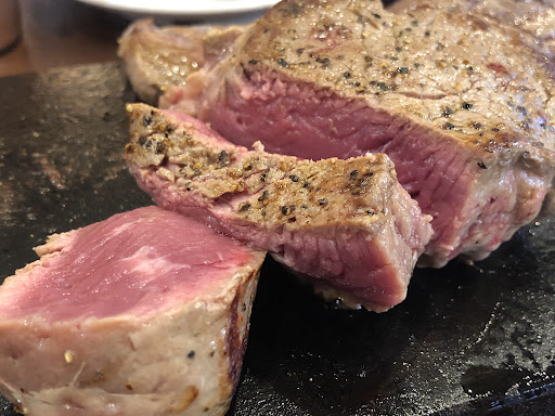 やっぱりステーキ(ミスジ)、赤身、ヒレ、上ミスジ、イチボを食べ比べてみました。 メニューで悩んだ時は、替肉システムがあるのでメイン+他の部位を少しずつという選択肢もあります。
