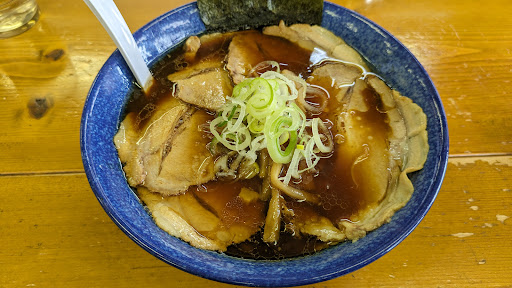Read more北見でインパンクトのあるチャーシュー麺を出すお店。 以前から噂で聞いていた、丼を覆い尽くす醤油チャーシュー麺を頂きに来ました。 お値段は1100円と、割とリーズナブルな設定です。 メニューは少なく、ラーメン各種とチャーマヨ、ライス、ジュース等で、チャーハンや餃子などはありません。 ほぼ、開店時間に入店したので直ぐに運ばれてきました。 やはりインパクトがありますね! 確かに丼を覆い尽くすチャーシューで食欲が爆上がり。 一見濃そうな、黒いスープから飲んでみますが、塩辛くは無く飲みやすい。 チャーシューは大判で柔らかく、食べごたえがあります。 味付けもマイルドで何枚でも食べられそう。 麺はモッチリ感があり、ツルツル麺でスープとも良く合います。 店内は小綺麗で、清潔感もあって安心して食事が楽しめます。 カウンター席と、小上がり席があり、それなりに席数はありますが、昼時は混雑しそうです。 駐車場は店鋪横にありますが、広くはないので、昼時は直...