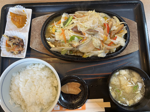 優しさを感じられるそんな空間でした。 かつてふるさと銀河線がすぐそばを走っていたなごりがあり 店の入り口に線路を彷彿させる枕木がつかわれていました。 少しわかりにくい場所にあるので私を含め気がついていなかっ人もいると思います。 ネットを見て最初別なものを注文するつもりでしたが先頭に野菜炒め定食の名前をみつけ気持ちがうつりました。 鉄板に山のような野菜キャベツ、白菜、青梗菜、もやし、椎茸に彩り鮮やかな赤、黄、橙のパプリカとピーマンもちろん人参も入って味付けも私好みでよかったです。 まだまだ挑戦してみたいものがたくさんありましたから次回きたいです。 一部低評価のコメ読みましたが決して不快なお店ではありません。 私ならもっとお話が出来て身の上話ができる方がいいので...