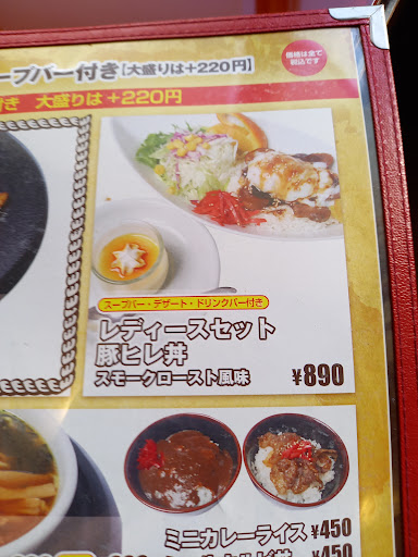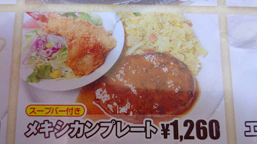 スープバーつきのメキシカンプレートと嫁がハンバーグ&ビーフシチューをいただきました。 ハンバーグに味がついているみたいでソースはステーキソースみたいな感じでした。具とソースに味で塩味を強く感じたかなぁ。 サラダに小ぶりの海老フライとホタテの薄切りフライが1つずつ付いてピラフはミックスベジタブルのカレー風味なピラフ。 10数年振りにカレーピラフ食べたから美味しかった。 子供も喜んで食べれそうです。 ビーフシチューは…1切れくらいハンバーグに乗ってる感じでパサパサしてガッカリしたそうです。 スープバーはインスタント味噌汁が袋事置いてあるのと自販機なポタージュスープ、オニオンスープ、中華スープも有った気もする。 ビッ〇リ〇ンキーとビ〇ト〇アステー〇ョンを合わせたくらいなレストラン。 質より量...