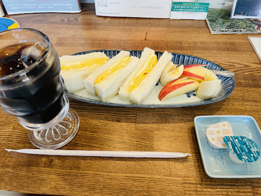 Read moreカレーを食べたかったのですが、カレー品切れでナポリタン頂きました。 細麺ですがやわ過ぎず、イメージしてたナポリタンより甘味は控えめでトマトの酸味を強く感じました。 私はトマト好きなのですごく美味しかったです。タバスコとチーズをかけて頂きました。 タマゴサンドは、スクランブルエッグやゆで卵ではなく、たまご焼きです!からしマヨが入っています。相性抜群です。パンはフワフワというよりもっちりしっとりしていて本当に美味しかったです。普段カラシマヨは食べませんが、相性の良さなのか本当に美味しくてペロリと食べました。