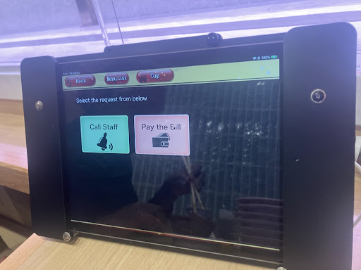 The name is underwhelming and the service is average, with standard sushi options. Prices are on the high side. The loud noise from the conveyor belt adds to the excitement, but also blocks the view of the sushi chefs behind a wall. The atmosphere feels caught between gourmet conveyor belt sushi and budget sushi, lacking distinction. It's also inconvenient that you can't check the bill on the ordering tablet...