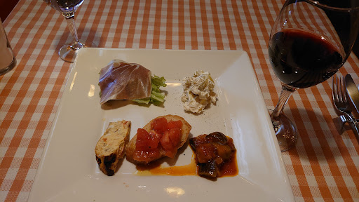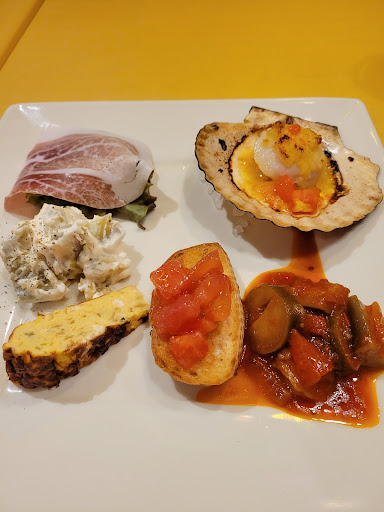 ★味付けについて まず前菜の盛り合わせですがプレートとしては豪華に見えます。とりあえずはイタリアンの形を成していますが、所詮はイタリアの家庭料理レベルです。 含まれているものは生ハムと野菜、サツマイモのクリーム和え トマト乗せたソフトフランスパン、ホタテのオーブン焼き、ナスのトマト煮(わかりやすい用に日本の料理名に置き換えております)の四種類。 まず生ハムと野菜の生ハムですがカルディで購入できるレベルのものです。近隣のベルクでも購入できるでしょう。そんなに良質なものではないです。 サツマイモのクリーム和えはクリームチーズの中に仄かにアルコールの様な味を感じました。白ワインっぽい味わいでしたが、これはサツマイモの甘さと渋みがミスマッチです。少々「臭み」を感じてしまうので分量ミスでしょうか?もちろん好きな人は好きだと思います。 ナスとパンはどこでも食べられる味という感じです、トマトソースで誤魔化してありますがナスの鮮度は別に良い訳でもないでしょう。野菜の甘味は無かったです。所でどこのトマトソースを利用しているのでしょうか?業務用スーパーのお徳用トマト缶と同一の味がします。手を加えてるのでしょうが、イタリアンというこだわりは接客の説明の割には感じられませんでした。バジルやオレガノを使ったかどうかも怪しいです。 ホタテですがまぁ別にこれといって……です。可もなく不可もなく程度な、つまりは海鮮としては不合格です。磯の香りもないですし(鮮度特有の礒臭さ)味も無味に近いので良いホタテではないですね。味付けで全て上塗りされている程度のものです 海鮮が苦手な人であれば食べやすいかもしれません。