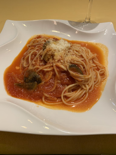 メインで頼んだパスタですが、要は豚肉と玉ねぎを煮込んだトマトソースのパスタと無慈悲にかけられたパルメザンチーズです。 まずこれについては文句を言いたい所なのですが、当たり前の様に粉チーズをふりかけられたものが出てきました。この料理は豚肉と玉ねぎを煮込んだ際の深く芳醇な甘みと、それを締め上げるトマトソースで構成されている料理だと思いますので粉チーズで誤魔化すのは良くないと思います。またパスタの太さも適切とは言えません。パスタはやや細め、このソースを選ぶのならもう少し太麺の方が良かったでしょう、さっぱり食べるという事をメインにしているのであればそもそも粉チーズのチョイスはないです。タバスコが選べた方が良かったでしょうね。 それから豚肉の甘味ですが、臭みの方が強かったのでこれも普通のスーパーで購入できるレベルの豚肉でした。 玉ねぎの甘味は豚肉の臭みと相殺されてほぼなかったように感じます。 トマトソースはナスの時と同様、業務用スーパーで手に入るものとほぼ同じ味がしました。というよりも業務用スーパーであればもっと美味しい「既に作られたソース」が存在するのでそちらの方が味としても上です。 シェフの方はお酒を飲まれる方なのでしょうか?そうではないのであれば舌が鈍ってきているのではないかと疑います。