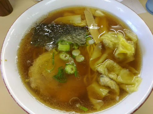 ようやく直丼。 味はどうかなと…あれ?細麺?麺変わりました? スープの出汁少し変わったかな?襟を正すようなシャキッとした味だったのに… スープも少し温い… ワンタンこんなに少なかったかな?