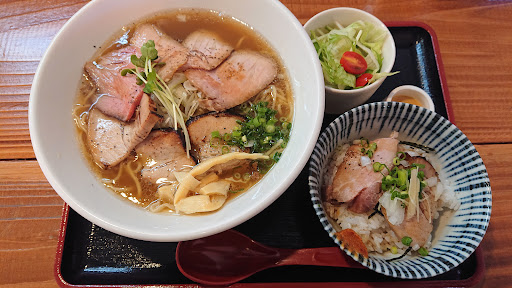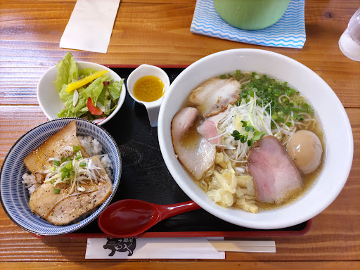 ラーメンの麺はしっかりしていて歯応えのあるタイプ、チャーシュー(ローストポーク)はしっとりしていて歯触りが麺に負けない感じ。メンマはとても美味しかった。 スープは塩の使い方なのか、肉の脂なのか甘味を強く感じました。正直、好みは分かれます。完飲出来る感じで嫌な雑味はまるでないので私は好きです。
