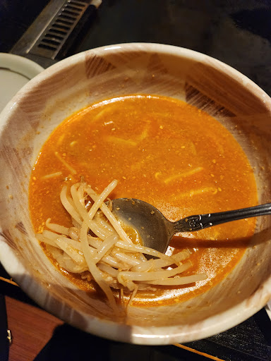 Read moreいつもはランチで利用していますが、本日は子供の誕生日お祝いで夜に来ました。 やみつきスープが好きなのですが、具材がもやしと、ほんの少ーーーしの卵の白身だけでした。え、数ヶ月前は卵もっと入ってたと思うのですが、器に入れ忘れ?肉も前は挽き肉か何か入ってたような気がしたけど、今日は何も無かった。 しかも、いつもアツアツだったと思うけど、今回は1口目から熱くない。。 数年前に今のものに近い感じに変わったと思うのですが、初期?のほうが好きでした。 今回主人と私で2つ頼んだのに、、、1つはほぼ残してしまった。。非常にがっかりです。スープ改善しないならもう頼まないかも。昔のがどの店の旨辛スープよりも好きだっただけに残念すぎる。 ランチがお得なので、しばらく夜は利用しないかも。 ベストマッチもんじゃはいつも美...