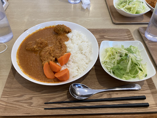 Read more◯食事 チキンカレーを注文しました。 程よくスパイスが効いてるけどマイルドで美味しい!鶏肉もしっかりしたものが入ってます。 途中から2歳の娘に横取りされたのですが(笑)「からい」と言いながらも、一人でほぼ完食してしまいました。 相当おいしかったみたいです。 私は仕方なく、娘のために頼んだおにぎり豚汁セットを食べましたが、こちらも美味! すべて丁寧に作られてるのを感じました。