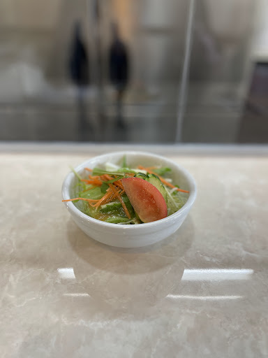 先にサラダが配膳される 酸味が抑えられたドレッシングは上品だ
