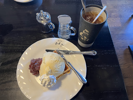 注文は、 らんぷレギュラー(ホット)¥440 らんぷレギュラー(アイス)¥440×2 あずきワッフル...
