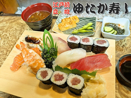 Read more日曜12時に来店。 初めてだったのでお寿司(1100円)を頼みました。 まずセットとして玉子焼き2切れ、塩茹での枝豆、蛸ときゅうりともずくの酢の物が出てきました。玉子焼きは少し固くふわっとした甘口、酢の物はわさびが少し効いてて前菜にほどよい甘酸っぱさ。 そのあとお寿司と汁物が出てきました。お寿司はまぐろ、いか、はまち、海老、鉄火巻き、たこ、穴子で、ネタとシャリの握り具合がよく、崩れにくくて口にいれるとうまいこと風味が合わさってとても美味でした。穴子だけでなくたこにもタレがかけてあり、驚きましたがこちらも美味しかったです。汁物は普通の味噌汁でしたが寿司の後にお腹を温めてくれます。 お店の方も物腰柔らかで丁寧でと...