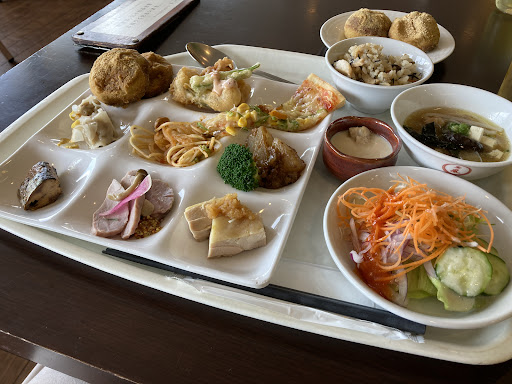 (あくまでも個人の意見ですよ〜) 暮らしの発酵ならではのユニークネス。食べても身体が重くならないのが本当に不思議に思います。2週間前に口コミでみかけた、焼売に惹かれたのと、今回はガッツリいただきたかったので、11/15ランチ利用しました。抹茶うどん、野菜カレー、カボチャピザ、そして豊富なタンパク質メニュー:魚介のフリット、昆布締め発酵鶏の柚子胡椒葱焼き、三枚肉の麹煮、甘酒棒棒鶏、秋野菜と山芋の豆乳グラタン、アグーの五目焼売、応援消費のホタテとセロリ炒め、とタンパク質をしっかり取ることができました。また、スイーツのタピオカ甘酒、ミルクジュレ、ブラウニ、カボチャのパンナコッタ、キャロットケーキ、カボチャプリンとシーズナルで豊富な品揃え、一品一品に工夫がされていて、暮らしの発酵ならではでした。とにかく、メニューが豊富で五感大満足いたしました。今回のランチメニューは期間内にリピートしたいです。本当に美味しかった!前回より満足度が高く、ビーガンメニューも増えたように思えました。 お値段はしますが、5Starじゃたりないお料理の質とコンセプト。