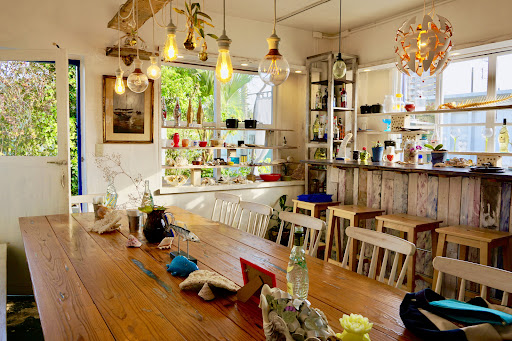 店内は貝殻や魚の骨をあしらったディスプレイなどが置いてあり、照明には流木、壁に波のような色が塗ってあったりと海や地中海を想起させる可愛いインテリアです。 入口近くにオーナーさんの趣味がこそっと飾ってあるのが面白い。何が飾ってあるかはぜひ行って見てみてください。
