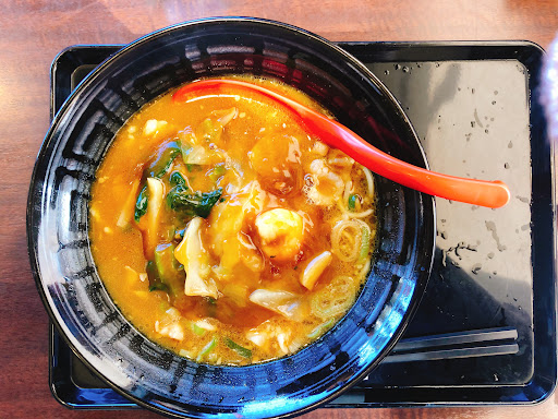 前々から気になってたカレーラーメンをようやく食べる事が出来ました❗ が、少し残念~(´Д`) まずラーメンとありますが、これはチャンポン麺?ではないかと? 弾力、コシ、太さなどものすごく酷似していてラーメンを食べてる感じにはならなかったです。 麺が二種類あって普通と太麺が選べますが普通がそんな感じでした。 当然ながら豚骨ラーメンじゃないので固さも選べず(;´д`) 少し早く湯切りしてくれるだけでいいのに… 替え玉も当然無いので最初から、大盛を注文。 が、これもまた量が少なく感じてガッカリ。 値段の割りにこれなの?みたいな。 私は普段ラーメンを食べる時は、大盛と焼き飯&替え玉なんで全然足りず。 サイドメニューは白ご飯と唐揚げとかだったんで遠慮してましたが、よく食べる人は更に高くなりますが絶対セットにするべきだと思います。 ここまで否定的なレビューしましたが、スープはさすがにバリうまで、しっかりコクがあって美味しかったです。 総評するととても美味しかったですが、リピートは…あまり無いかも。 何かラーメン食べてる気になれず…カレー味のラーメン食べたくなったら日清のカレーヌードルで十分かなと。 どうしても麺の違和感が拭えず、このよう...