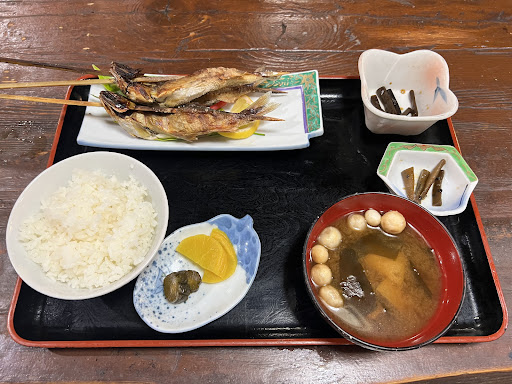 Read moreとてもアットホームで「帰ってきた」感のある素敵なお店です。 建屋の古さが、田舎のおじいちゃん、おばあちゃん家のようで良い味を出しています。 こちらにはたまにお昼を頂に伺いますが、何時も心温まる思いと食事を楽しませて頂いています。 目当ては鮎定食と山女魚定食。 今回は入荷が無いとのことで山女魚が無く、二人共鮎定食でしたが、定食が出来る前に小鉢のサービス、食事中に野菜の天ぷら盛りがこれ又サービスでドンと置かれます。 どうもこれがここのスタンダードらしく、初めて伺った時は驚きました! とても素敵な心遣いだと思います。 小鉢の中の物を併設のお土産コーナーで拝見したので、思わず購入! 軽食の売店も併設されているので食べ歩きの調達も楽ちんです。 良くある観光地の観光客相手の食堂とは一線を画すおもてなしと言うかお店の心意気と言うか、兎に角、町中の食堂の常連的な安心感が味わえ...