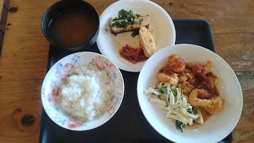 Read more田舎の喫茶店です。 ニコニコしたおばあちゃんが、『今日のランチはね~ミートソース作ったのぉ!』『まだ、味見はしてないけどぉ』っと笑わせてくれます。ミートソーススパゲッティも手作り感満載のトマトの酸味から甘味、他にランチセットのお供がまた豪華!新鮮な野菜のサラダ、野菜のお漬物、懐かしい味の醤油汁、ゆかりがかかったごはん、デザートのフルーツ盛り、コーヒー。もうお腹がいっぱいになりすぎて、夕御飯が入るか心配でした。 他のお客さんも、通いつめたお客さん達ばかりで、楽しそうな会話が続いてました。 ランチに行って、こんなに笑顔で過ごせる時間は他に無いと思います。いつまでも長く続けて頂けるようまた行きたいと思います!必ずお腹は空かせて...