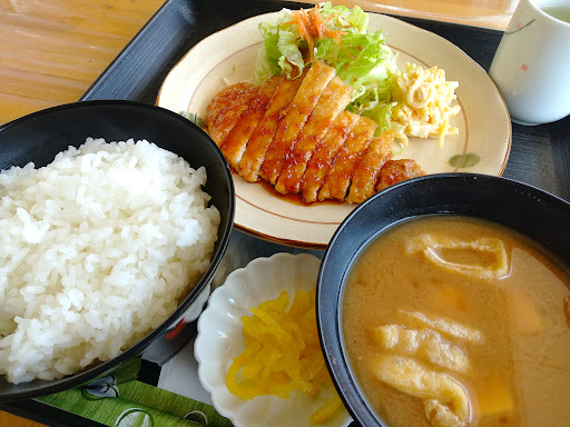 Read more焼肉定食1000円を注文。丸皿に、豚肉と玉ねぎとニンジン入りの焼肉、玉子とスパのマヨ和え、千切りのキャベツ、ニンジンのドレがけなどあります。やや甘みのタレと野菜食感とで美味しい!豆腐とあげの合わせ味噌汁、ご飯、漬物がいっしょです。店は中2階、駐車場は地下4台。バックで入ったほうがいいかも!です。本日のランチ75...