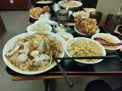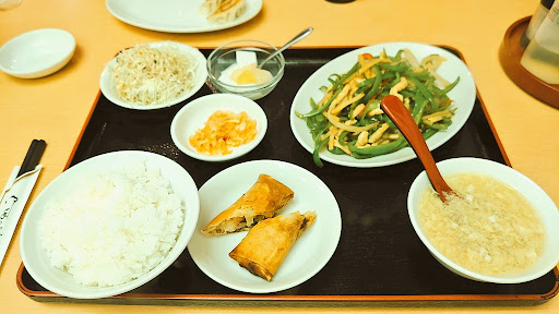 Read more遠出の帰りにお腹空きすぎて通りがかりの夜9時近くに入店しました。 遅くまでやってくれてるから中華って有難いね。 他にお客は2組くらいいました。 麺飯セットにするか定食にするか悩んだけど私の感覚として麺飯セットが他の色んなお店より少し高め設定かな?あくまで私の感覚ですが安い所だと650円くらいから大体750円くらいのイメージ。行ったところは殆どそうだった気がする。 夜は200円増しがデフォぽい。こちらのお店はそれよりは高め設定。でも家賃だ食材費だなんだだのあったりすると各所どうしても値段は変わっちゃうからしょうがなし! ずっとにんにく茎炒め(最近は中華行くと頼みがち)か青椒肉絲(中華のおかずではかなり好物)かで悩み抜いて青椒肉絲にしました! 店内の照明なのかスマホカメラの補正がおかしいのか変な色で写真撮れてしまってますがもっと美味しい色なんです😅💦 青椒肉絲定食(1180円)の内容は青椒肉絲、ご飯、サラダ、漬物(キャベツ?大根皮?のキムチ)春巻き、杏仁豆腐、卵スープでしたがボリューム結構ありました。 青椒肉絲の量がね、割と盛り多めで嬉しい♥ スープは卵たっぷりで味は控えめ優しくて美味しい。漬物がキムチなんだけど甘さと後から来る辛さが私の好きな味で良かった✨ 青椒肉絲もこのほんのりの甘さが最高なんだよな~って感じで全体のお味は好みな方でした✌️ 他の定食やラーメンと炒飯も食べてみたいので...