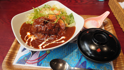 Read more知り合いとランチする為に良い場所探してて気になったので初訪問です! 1時近くに伺いましたがランチタイムなので席は9割近く埋まってた。人気店なのが伺えますね。 カフェレストランとだけあってとてもメニューが豊富!軽食からガッツリからスイーツまで網羅してます。メニュー多いの好きな人にはポイント高いですね。 パーティー用貸切席などもありました。 私は散々悩んでデミ味噌バーグ丼に!以前別のハンバーグ店で食べた味噌バーグが美味しかったので気になって仕方なかったのです。 デミ味噌なので味噌感は正直あまりなかったですがコクはあり美味しかったです。甘めソースなのでお子様でも好きそうですね。 味噌汁付きですが結構ガッツリだったのでお腹パンパンになりました。おやつ食べる余裕なかった~😅 ランチタイム終わると一気に人いなくなってお店もガランと静かになります。 途中でトイレに行きたくなって行ったんですがトイレがカウンターに近いとこにあるのでトイレ出た後にわざわざお手ふきにおしぼりどうぞとホカホカおしぼり渡してくれてなんて良いサービス~~と感激でした🙏(勿論ちゃんと手は洗ってますよw) その時に居た店員さんも笑顔が可愛らしく明るい方で接客面も◎でした👏👏 本当にメニュー豊富でまだ色々食べてみたいし居心地良いので良い所見つけたなーと。 場所も住宅地の中にデンっとあるので知らなきゃある事すら気付かんかも(ってご飯屋多いですよね) 駐車場も広...