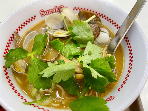 スガキヤのあさりは5個に1個くらい、 砂や欠けた殻が入っているのが難点ですので 麺や他の具と一緒に咀嚼しない事をオススメします。