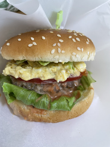Read more少し前から、気になっていたお店でした。 ハンバーガー専門店だから、さぞかしおいしいんだろうなと思って。 今日は、持ち帰りで利用しました。 店の外観から、なんとなく若い男性が営業しているのかと思って、恐る恐る店内に入りましたが、違いました。 ママさんは、丁寧な感じの応対でした。 作っていた方も静かな雰囲気の方達でした。 店内は、いかにも私たち日本人が想像するようなアメリカン風カフェのテイストです。 出来上がるのを待っている間、椅子に腰掛けて店内をぐるりと見渡しましたが、店内は、明るさも充分あり、装飾も赤を基調としたテーブルがおしゃれ。 壁のイラストも大変楽しげな感じで、かつ清潔感がありました。 丁寧にパッケージされたハンバーガー、ポテト、マカロニを、持ち帰り、自宅でいただきました。 ハンバーガーは、非常に丁寧な作り方をしてあったと思います。 自家製タルタルソースが、卵サラダのように優しい感じの味でした。 食べ過ぎになることなく、美味しくいただきました。 このクオリティーで、セットで1000円以内で食べられるという値段は、非常に良心的だと思いました。 次は、楽しげな店内で、できたてを気分...
