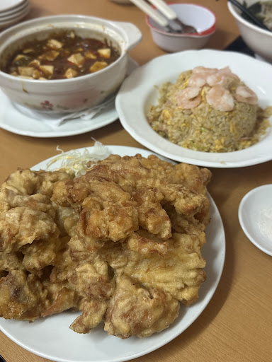 Read more京都の木津にある町中華の萬盛🇨🇳 こちらお値段は安いのに量がバグってる…メニューの写真とは逆詐欺なお店…と妹夫婦から聞いてまして。お腹すかせてきてね!との指示が☝️ お店はめっちゃ広くて開放的✨️私と妹は麻婆豆腐と海老チャーハンをシェア、妹旦那は刀削麺、甥っ子はお子様セットのラーメンとポテト、それにみんなで食べる用に唐揚げ1人前を注文☝️ 届いてびっくり😳え。チャーハン1人前お茶椀3杯分くらいないですか?麻婆豆腐絶対豆腐1丁どころじゃないですよね??笑 1番びっくりなのが唐揚げ!ケンタッキーのオリジナルチキンくらいのでかさの唐揚げが5個笑笑笑 さらにお子様セットのラーメンは大人1人前とポテトはマクドのLサイズぐらい😇すごすぎ…🤣🤣🤣 ボリュームにも驚くけどこれがまためちゃくちゃ美味しい!お店の方が皆さん中国の方だったから本格的なのかなーって思いきやちゃんと日本人好みの味付けになってる🤭 チャーハンも麻婆豆腐も唐揚げも美味しすぎ✨️けど帰りはお腹はち切れるか思った🤣 ちなみに食べれないぶんはお持ち帰りのパックくれます☝️ 唐揚げ2個とポテトはお持ち帰りしました✌️ たくさんの人と行ってシェアもいいし大食いに自...