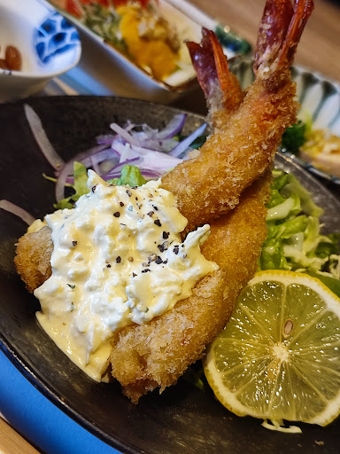 メインのエビフライですが衣はそこまで厚くなくエビも太めです。個人的な希望としてはもう少し火の通りが弱ければ...でしたが自家製タルタルを付けて食べると美味しかったです。 タルタルももう少し個性があってもいいかな?とは思いましたが他のおかずの雰囲気からするとこれぐらいが丁度いいのかも知れません。 この日のおかずで良かったのは鶏肝とこんにゃくの煮物。 鶏肝の臭みは全くなく丁寧に作られていることが分かります。 その他のおかずもどれも丁寧で食べるとホッとする...そんな料理でした。 お値段はそこそこしますが個人的に高いとは思わなかった出来ですね。 近くに行ったらまた訪問すると...