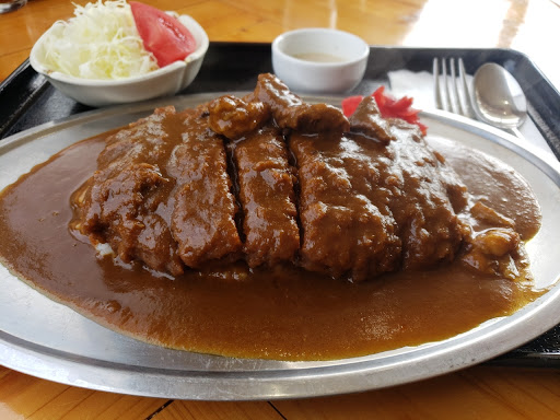 Read more道の駅ゆ~ぱるのじり内にあります。 今回は二度目の訪問。看板メニュー?と思われる霧島連山ふてもふてカツ丼をいただきました。空腹じゃなかったのでカツのサイズが一番小さい夷守岳にしました。衣がサクサクで美味かったのでソースで半分も食べてしまい、残りは別添えの卵とじをかけてと。ただ、好みの半熟加減の卵とじではかったので、ソースカツ丼の方がよかったかも(メニューにないけど)!まぁ、両方の味が楽しめるというアイデアはいいかも。 初訪問でカツカレーライスをいただきました。 カレーは、欧風カレーのようで、スパイシーさと辛さは殆ど感じられませんが旨味とコクがあります。 個人的には好みの辛さに調整できるように、香辛料も添えてもらえると嬉しいですね(さらに★一つ追加)。 サックリしたカツは丁度いい硬さで美味しいです。 コスパはよくないけど、煮込んでとても柔らかくなったビーフも入っており、地元の食材を使いコストと手間暇をかけ作られたようなので仕方ないかな? 隣の席の独特なカツ丼もスゴく気になりました...