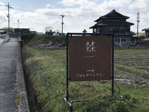 水面に空や雲が写って綺麗な田んぼが、一面広がるのどかな田園風風景 県道から少しそれると出てくる看板 「木」という字が4つ ご主人の名前木全さんと、 奥様の旧姓森井さんの木を合わせた形✨