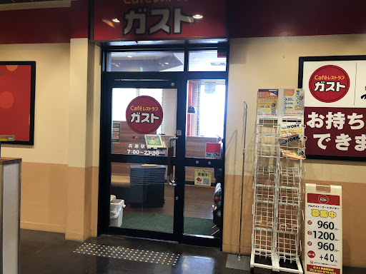 2024年4月 前回より1週間後に晩御飯で利用。 仕事で帰るのが遅くなったのでご飯作るの面倒になりガストへ。 ガストブラックカレー元気盛り。ご飯大盛や特盛が無料とのことで特盛で注文。 カレーの上に薄めのトンカツ、ハンバーグ、目玉焼きの順に重ねられていて、横にエビフライとソーセージ。 ご飯は特盛とはいうもののココイチの300gぐらい下手したらもっと少ないかもしれない。 まあ、でも美味しかった。カレーはあまり辛くなくて、カレー自体の具材は溶けていてルーしかないが、ハンバーグや、トンカツなどのトッピングとよく合う。