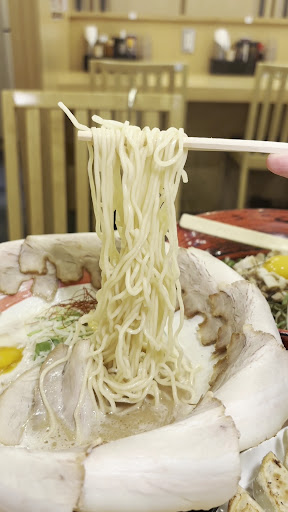 エースの名に相応しいチャーシューが大輪のように器を覆い隠した一杯。 豚骨の旨味と天然コラーゲンが溶け込んだクリーミーでまろやかな泡系スープ。 泡系ながらもエスプーマのようなまったりとした泡ではなく、口当たりはかなり滑らかで麺にまったりとまとわりつくタイプではないのでより麺との輪郭が生まれ味わい深い。