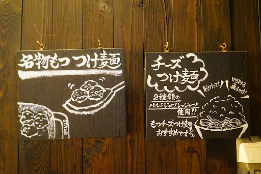 一樣看不是很懂菜單,大概只知道招牌是沾麵(つけめん,管理員大大說的左上角就是招牌🤣),另外也有もつつけめん(應該是有腸腸類的沾麵,通常是指牛小腸,博多的もつ鍋真心美味),咖哩沾麵(カレーつけめん),起司沾麵(チーズつけめん),然後看要不要醣心蛋或叉燒,並選麵的多少,以上也有針對喜歡喝湯的客人推出らーめん版本的,最後還有一道非常吸引我的乾擔擔麵(汁なし坦々麺),這個居然可以選野菜增量,害我超猶豫的,後來在優先店家招牌的原則以及懷念牛腸美味的催促下點了味玉もつつけめん。