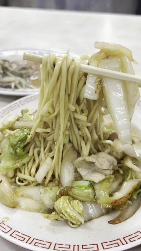 ◼︎ヤキソバ かなりしっかり目の塩の味付け。 平打ち中太麺はコシがあり噛めば噛むほど小麦の風味も豊かです。 中華出汁の風味も良いのでコクもあります!海老や豚肉など具材も豊富で白菜の甘みも最高✨ 濃い味が酒呑み向けだなぁって思いました!