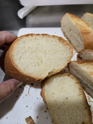 フランスパン生地は噛み切れないほど固い。中は湿気てるような、数日たったようなパン生地。味もない。 口の中の水分が取られる取られる。