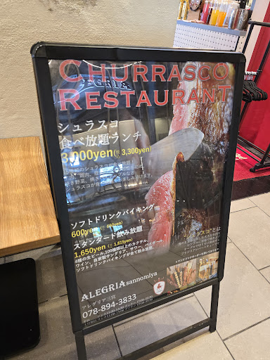 シュラスコ&ビアレストラン ALEGRIA 三宮 ミント 078-894-3833 兵庫県神戸市中央区雲井通7-1-1 ミント神戸 8F