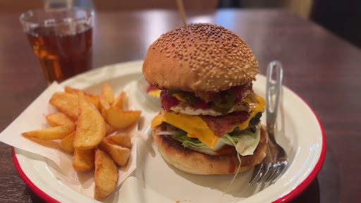 Procurando um bom hambúrguer? Não procure mais!!! Nosso grupo de 10 pessoas foi lá e conheceu a própria proprietária fazendo um ótimo trabalho sozinha em sua pequena e aconchegante lanchonete / bar discretamente localizada. É uma joia secreta que tivemos a sorte de encontrar enquanto procurávamos um lanche noturno. Seus hambúrgueres foram feitos na hora como você pede! Nossos pedidos foram atendidos e ela não decepcionou, mesmo os pequenos comedores exigentes ficaram felizes! Há um balcão com capacidade para 5 pessoas e mais duas mesas que podem acomodar talvez mais 10 pessoas? Não é um lugar enorme, mas vale a pena experimentar os hambúrgueres...