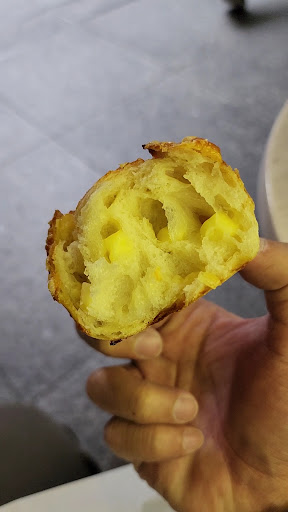 First, you need to go to staff and ask for the seat. She will wrute your name down. Now you go and pick your bread and decide on what to eat in and what to take away. When it's your turn to pay, the staff will ask you which items to be eaten at the store, and you need to order 1 drink for each person. Once you pay, the staff will ask you to wait outside and wait for them to call your name. Once you are seated, they will call you to collect your drink. There is a small oven where you can heat up your bread. This is a self-service store, so take your plates and cups to the counter near the kitchen once you are done.