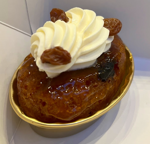 看板商品のそんなバナナも残ってましたが、パンは朝買ってすぐ食べたいので我慢し、ずっと気になっていたサバラン(税込561円)を…❤️ 無料でラム酒が追加できます!🍸追加してもらったのですが、ケーキを食べ終わったあと、カップの中に飲めるぐらいラム酒が残っており感動🥺! 上に乗っているホイップクリームは結構甘めで、クリームの甘さを強く感じました。 カスタードクリームはそんなに多くないですが全体的に入っており,クリームだけでも、ラム酒をたっぷり吸った生地と一緒に食べても美味しかったです😋