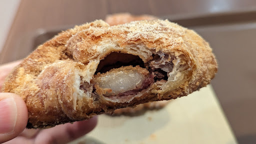 The matcha green tea raw chocolate has a robust flavor.Even when combined with the whipped cream and red bean paste, the matcha flavor remains. For a matcha bread at this price, it was tasty and satisfying enough.