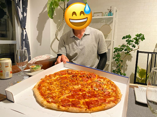 Read more急に、ピザが食べたくなり。 受け取りに行くと半額だったので、夏のクワトロを頂きました。 Lサイズなら、家族4人(大人+幼児2)は十分ですね。少し余るくらいの量です。その上にニューヨーカーという名前の大きさがある様ですが。)味はサッパリしていて食べやすかったですが、エビって皮付きなんだ〜と少しビックリしました。